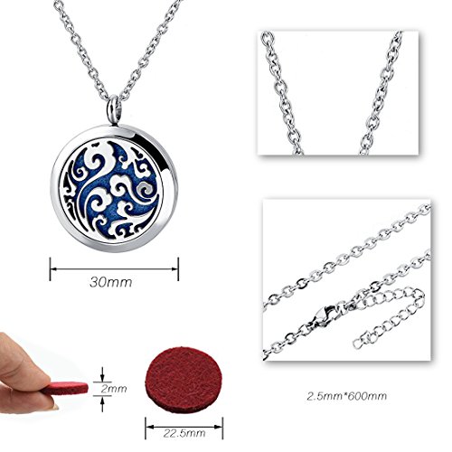 Cosa ottieni - 1 X Pendente medaglione con collana di oli essenziali per aromaterapia, 7 X Felt riutilizzabili (diversi colori) per adattarsi a qualsiasi stile.