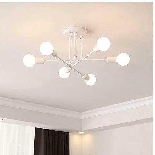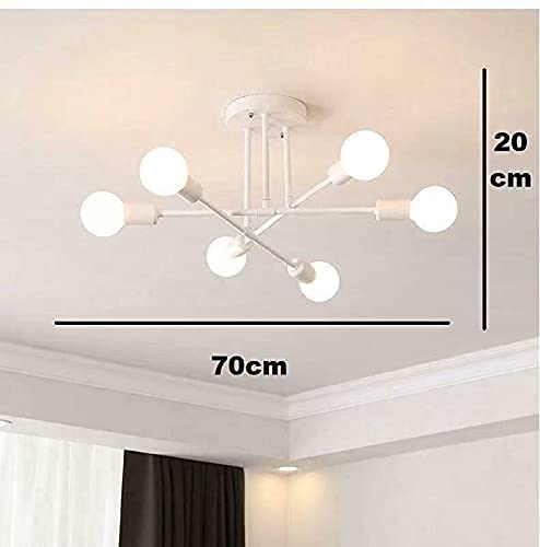 ┃ Design retrò e Moderno┃ Plafoniera con 6 lampade in metallo, ogni palo sostiene una lampadina ad entrambe le estremità, combinando elementi classici e tradizionali. Colore Bianco.