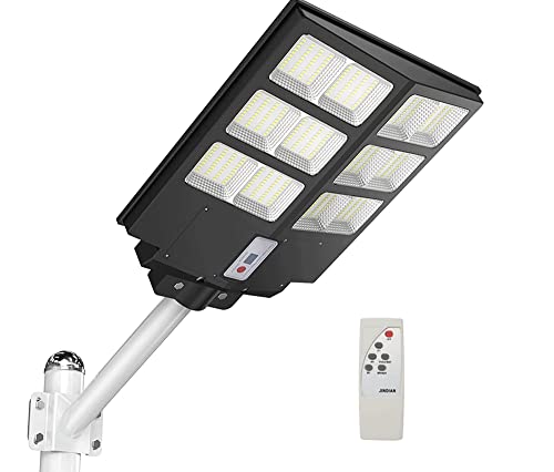 081 Store - Lampione Solare Led Esterno 600W Con Crepuscolare, Lampione Impermeabile IP67 e Telecomando e staffa di 50cm bianca per Esterni sensore Crepuscolare