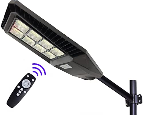 081 Store - Lampione stradale 400W Faro Led Solare Luce Fredda Telecomando + Staffa palo per lampione stradale 45cm Nero [Classe di efficienza energetica A+++]