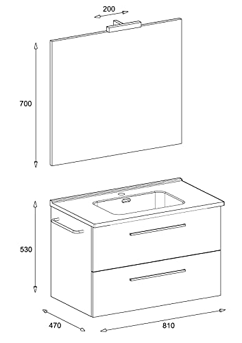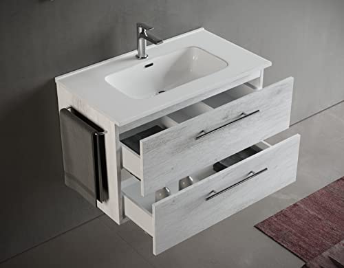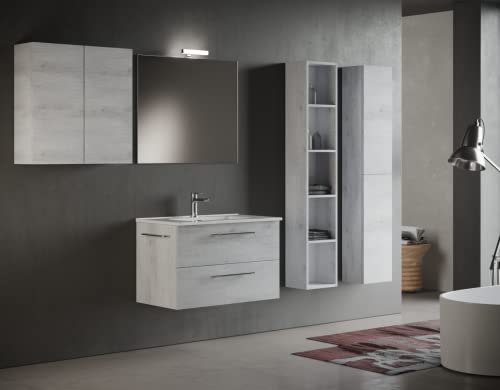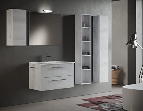 Mama Store ERA 80 - Mobile Bagno Sospeso 80 CM QUERCIA BIANCO con Lavabo, Specchio e Lampada LED, L.81 X P.47 X H.53 cm