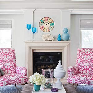 L' orologio ha una estetica che non passa inosservata, molto colorato, in stile vintage. MDF di legno, rivestito da carta, la carta da stampa in pellicola è un antiossidante, impermeabile, dal colore duraturo e vivido;
