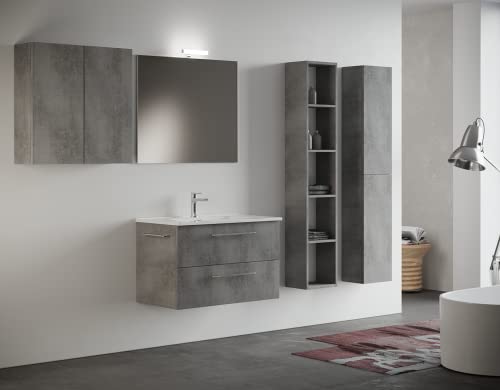 MaMa Store Pensile Doppio 2 Ante e Sistema di Apertura Push And Pull, Laminato, L. 68 X P. 22 X H. 71 Cm, Legno, Grigio Cemento