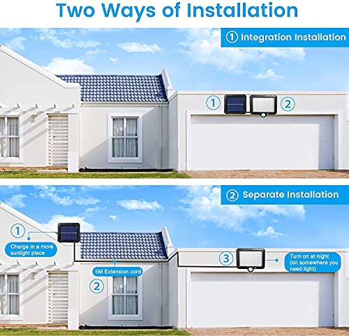 【Dividi design Luci sicurezza solare】 Rispetto alle tradizionali lampade solari, separeremo il pannello solare e il corpo principale della luce. Faretto LED Esterno fornendo un pannello di ricarica solare più grande,È possibile installare il pannello solare in un luogo soleggiato con il cavo impermeabile da 5 m incluso, Assorbe la luce durante il giorno e illumina di notte.