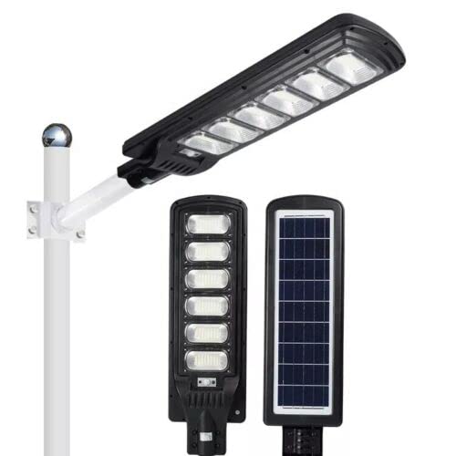 Lampione stradale ad energia solare, con fari a led 250W e senza fili, caratteristica che lo rende anche semplicissimo da installare. Il corpo in alluminio garantisce per la durata e la resistenza alle intemperie, emette luce bianca fredda grazie all'energia incamerata dal pannello fotovoltaico che ricarica la batteria interna e alimenta i led.