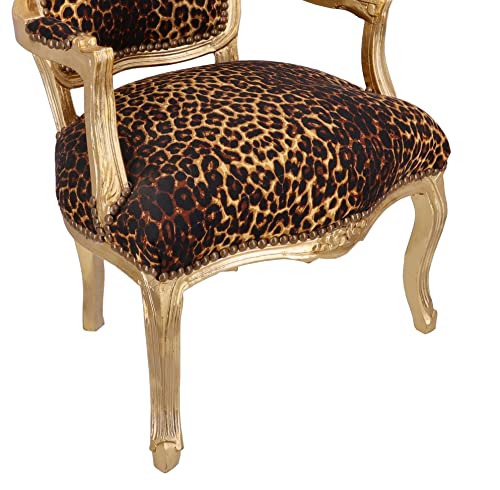 Way Home Store - Poltrona Barocco Luis Stile Francese Luigi XVI - Legno Foglia Oro e Tessuto Leopardato - Dimensioni: 63 x 65 x 94 cm