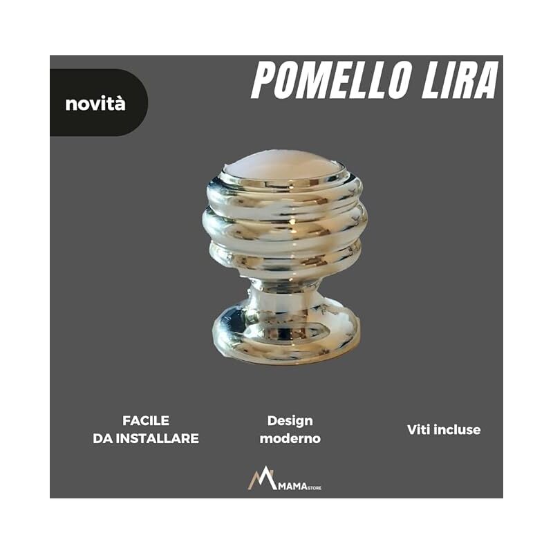 Elegante Pomello LIRA MaMa Store 20x20x25 Con Rifinitura Bianca in Plastica Per gli esperti del Fai da Te o per la sostituzione di una maniglia: elegante pomello in plastica cromata dalla presa confortevole. Il Pomello LIRA presenta due scanalature per garantire un'ottima presa nel suo utilizzo. Adatta a tutti gli ambienti di casa: mobili da bagno, mobili da cucina, mobili per camerette o soggiorno. Set di 4 Pomelli LIRA Cromati con Viti in Dotazione