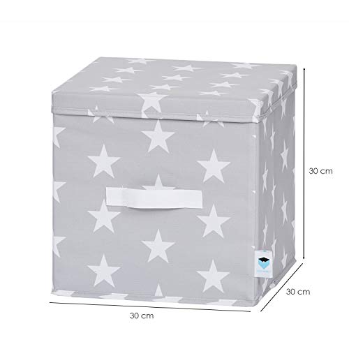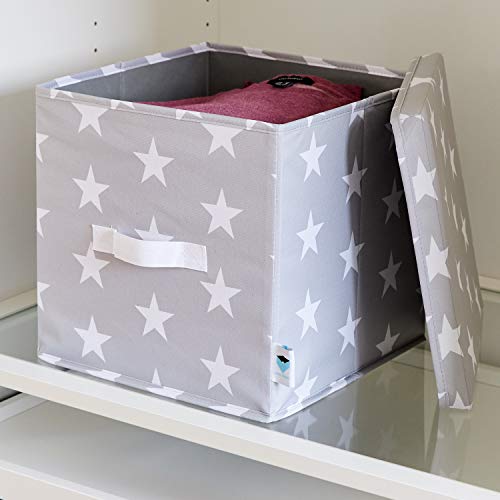 Love it Store it Scatola portaoggetti con Coperchio - Scatola per scaffale in Tessuto - con Maniglia, Stabile - Grigio Chiaro con Stelle - 30x30x30 cm