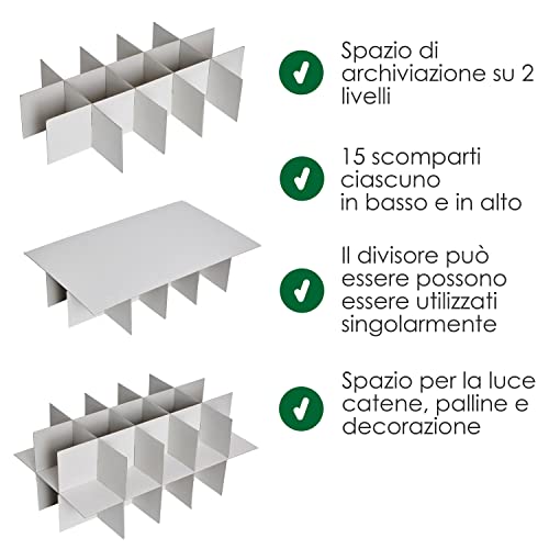 PIÙ ORDINE: Il contenitore per le decorazioni natalizie e per l'albero di Natale offre 30 scomparti su due livelli per riporre le decorazioni.