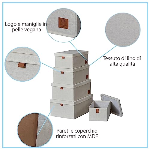 LOVE IT STORE IT - Scatole Portaoggetti Premium Con Coperchio - Lino - Pieghevole - Rinforzi In Legno - Per Cabina Armadio - Set Sa 5 - Beige Screziato