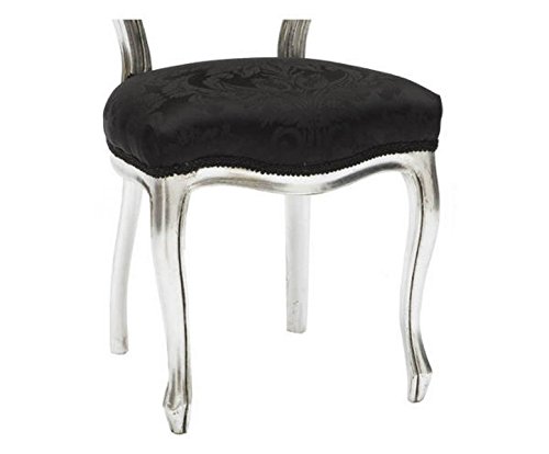 Way Home Store Sedia Musicista Barocco Stile Francese Luigi XVI Argento e Nera 44x48x85 cm