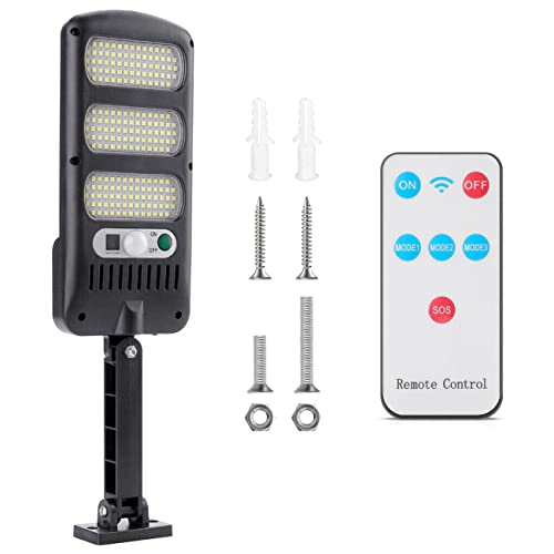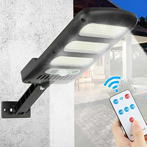 081 Store - Luce solare per esterno 213 led impermeabile con pannello solare e telecomando, lampione solare led da parete con sensore crepuscolare e di movimento
