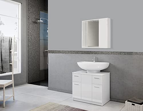 Mama Store SPECCHIERA Bagno con VANO Contenitore e Luce LED-Bianco Lucido Laccato, L. 60 CM X P. 16 CM X H.60 CM