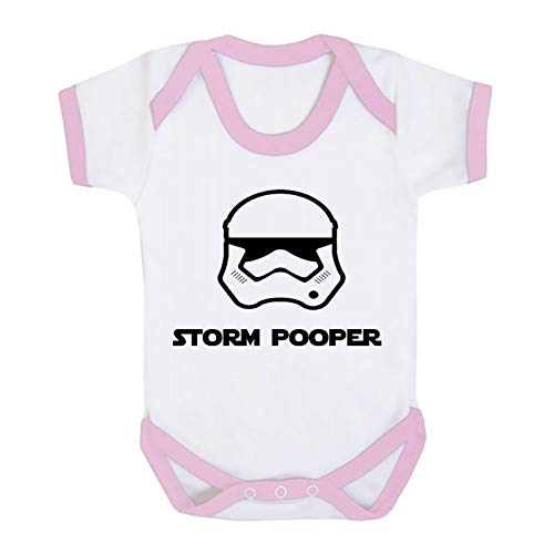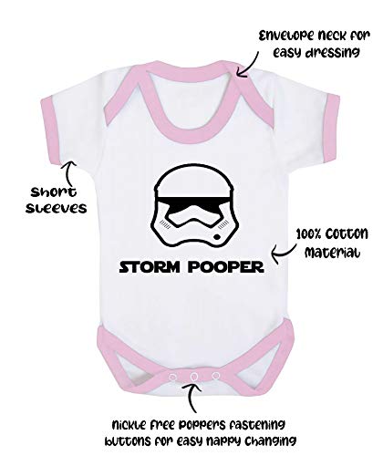 Body "Storm Pooper", progettato e stampato nel Regno Unito utilizzando 100% cotone pettinato fine, Finiture bianche e rosa., 6-12 Meses