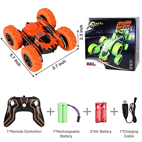 「Giri e ribaltamenti a 360 gradi」 - Esegue incredibili giri veloci a 360 gradi come un tornado, guida avanti, indietro, sinistra, destra liberamente, ribaltamento di 180 gradi e guida su due lati. macchina radiocomandata continua ad andare avanti, non importa cosa colpisce o come atterra.Questa è un'auto acrobatica facile da controllare con prestazioni eccellenti, che può essere di grande aiuto per i tuoi figli sia nell'intrattenimento che nell'istruzione.