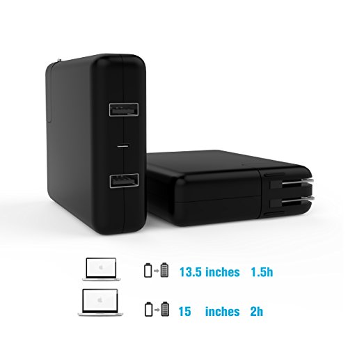 Stouchi 87 W 61 W 29 W USB C Power Adapter, USB C PD caricatore con Dual USB Porte Caricatore, Support MacBook Pro 15/13 pollici, MacBook 12 pollici e multiple Smart Phones NERO