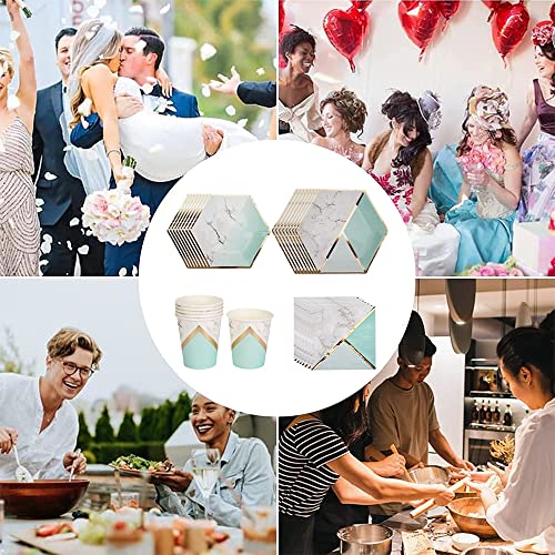 Stoviglie Carta Set, 40 Pezzi Set di Stoviglie per Feste, Stoviglie per Feste di Compleanno, Eleganza Moderna, per Compleanni Matrimonio Nascita Battesimo Party (Menta Verde)