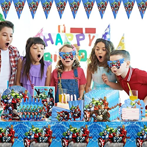 104 pcs Stoviglie di Compleanno Set,Set di stoviglie per Feste,Decorazioni di Compleanno per Bambini,Tovaglioli,Piatti,Tovaglie,Cannucce,Gagliardetti