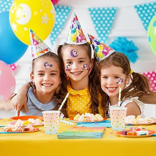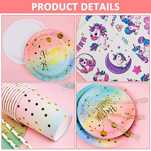 ❤ 【25 pezzi Compleanno Stoviglie per Feste】Include 25 piatti da 9 pollici, 25 piatti da 7 pollici, 25 bicchieri di carta, 25 tovaglioli, 25 cannucce, 25 forchette e due adesivi per unicorni.