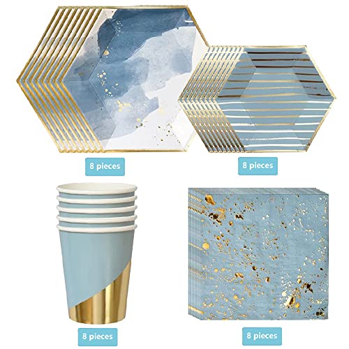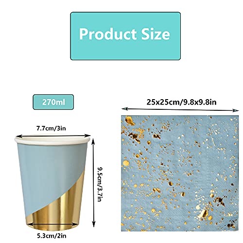 Stoviglie per Feste di Compleanno, 40 Pezzi Servizio da Tavola USA e Getta, Set di Stoviglie in Cartone, Usato per Baby Shower, Compleanno Ragazzo, Matrimonio, Compleanno (Acqua Blu)