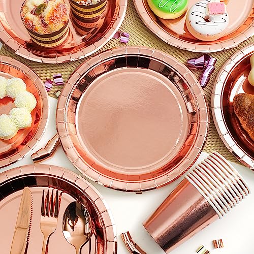 ROSE GOLD FOIL DESIGN: Questo set di forniture per feste è progettato per uno sfondo dorato rosa. Aggiungendo un tocco elegante e moderno a qualsiasi festa. Scelta perfetta per una festa a tema rose gold.