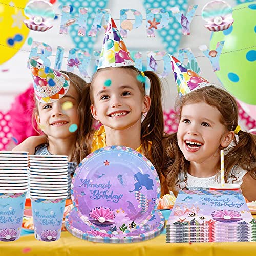 Set di Stoviglie per Feste Sirena, 70 Pezzi Set di Stoviglie per Feste di Compleanno, Sirena Stoviglie di Carta, Stoviglie per Feste a Sirena, Riutilizzabile, per Feste, Compleanni (16 Invitati)