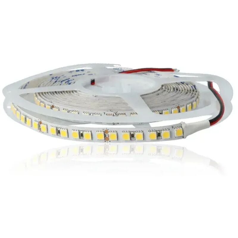 quindi è possibile variare la sua luminosità attraverso un dimmer. La striscia LED viene venduta in bobine da 5 metri, ma visto che si può tagliare ogni 5 centimetri, risulta molto versatile per ogni installazione. La striscia LED possiede 120 LED al metro . Tutta la gamma di queste strisce LED ha un gruppo di rischio GR0 e un indice di protezione IP20, quindi è adatta alle installazioni da interno;