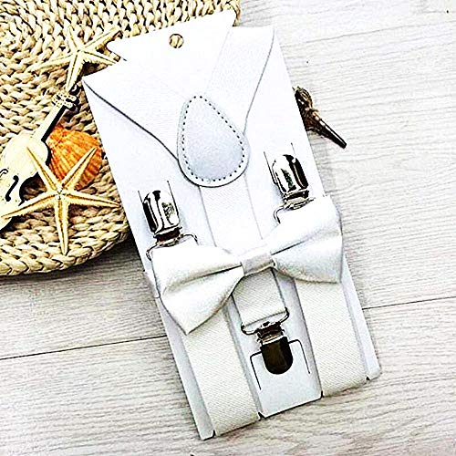 Straccali Bretelle Bambini - papillon - bianco - Straccali bratelle elastiche regolabili - completo - tinta unita - farfallino y - Idea Regalo originale