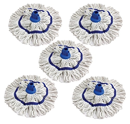 Straccio per pavimenti in puro cotone, 350 mm, colore blu, con aggancio per manico, 5 pz