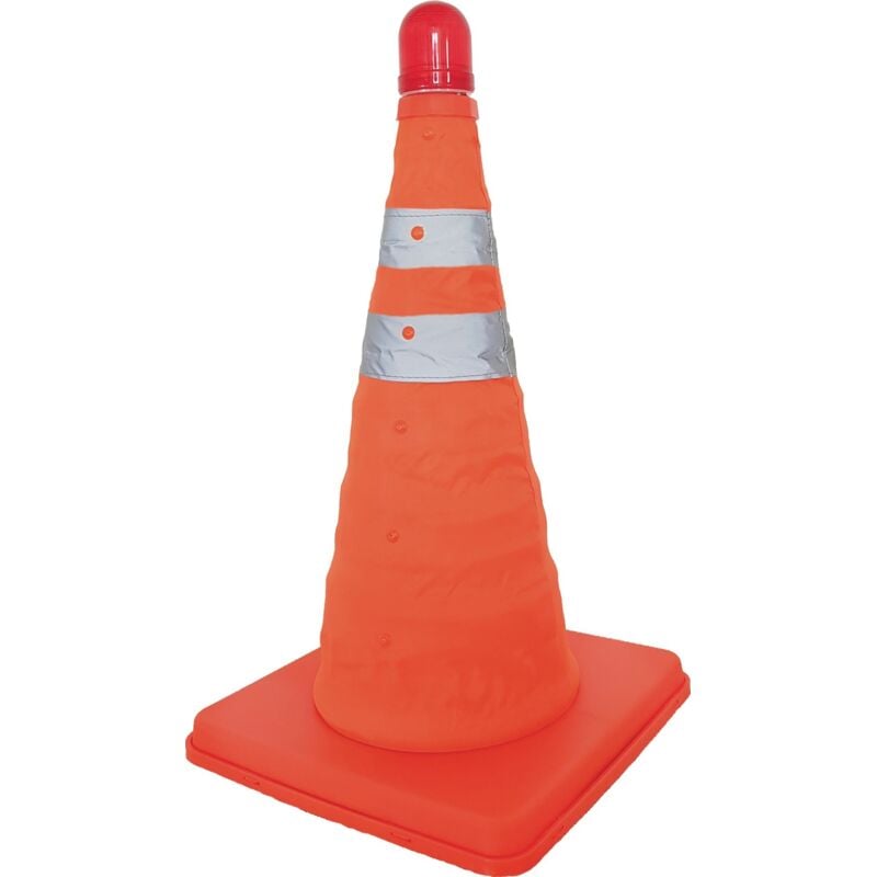 Pieghevole · Altezza 390 mm · con nastro riflettore e LED lampeggiante · Alimentazione 2 batterie AAA · secondo LA EN 20471 · con sacchetto di stoccaggio · Batterie non incluse nella cal cal calsatura in funzione! Altre caratteristiche tecniche: · Peso: 0,51 kg · Versione: pieghevole, con coperchio in nylon