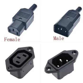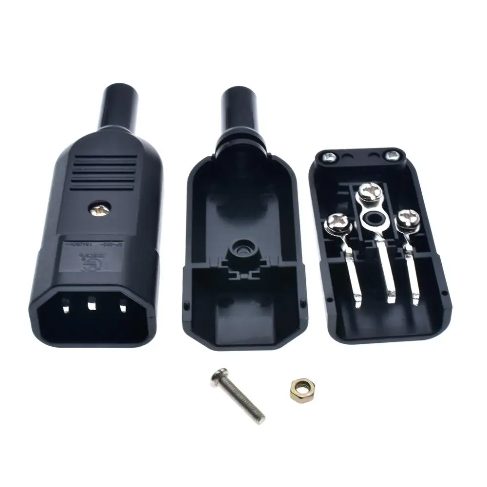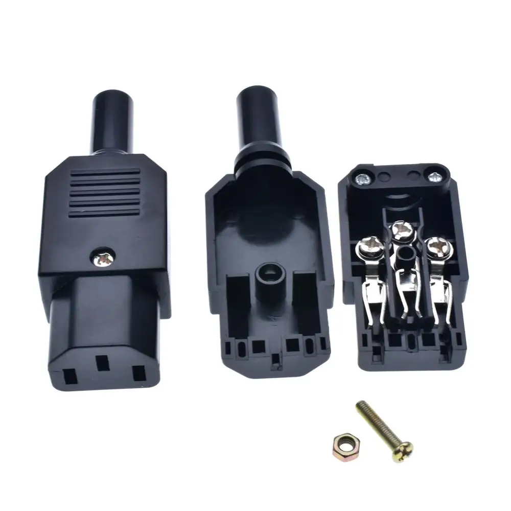IEC Straight Cable Plug Connector C13 C14 10A 250V Black female&male Plug Rewirable Power Connector 3 pin AC Socket