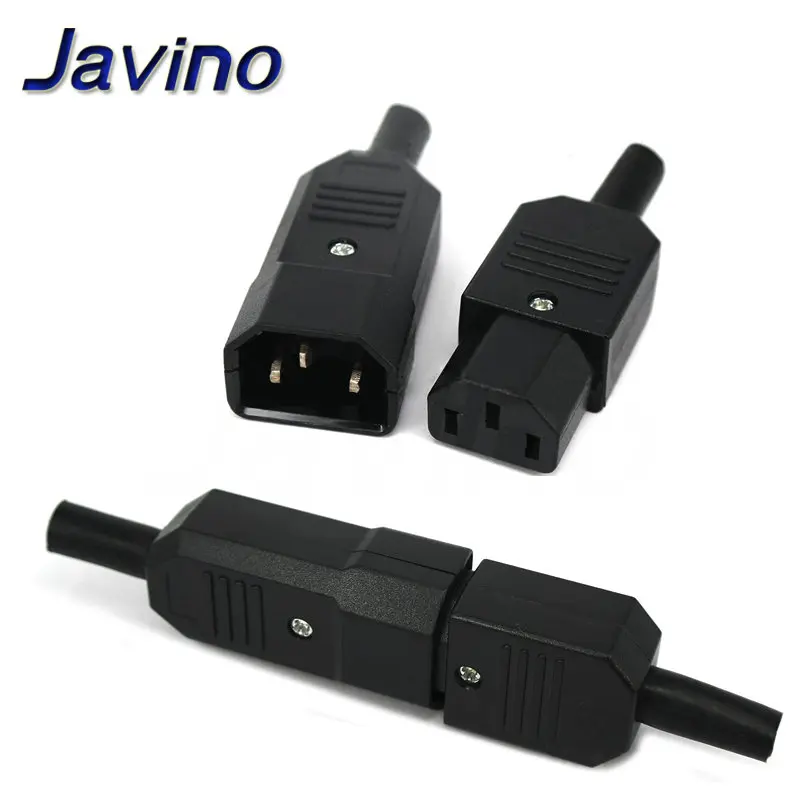 Straight Cable Plug Connector C13 C14 10A 250V Black female&male Plug Rewirable Power Connector 3 pin AC Socket