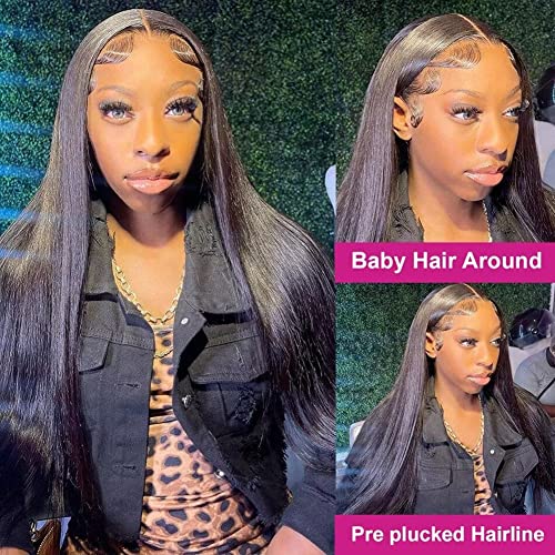 13x4 Straight Lace Frontal Human Hair Wigs For Black Women Parrucca Donna Capelli Veri Umani Lunghi Parrucca Capelli Umani Lace Front Wigs Colore Nero Naturale 30 Pollici