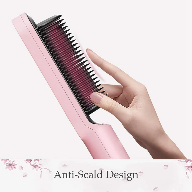 Pink Hair Straightener Brush - Hair Straightening Iron with Built-in Comb, 20S Fast Heating & 5 Temp Settings EU Plug