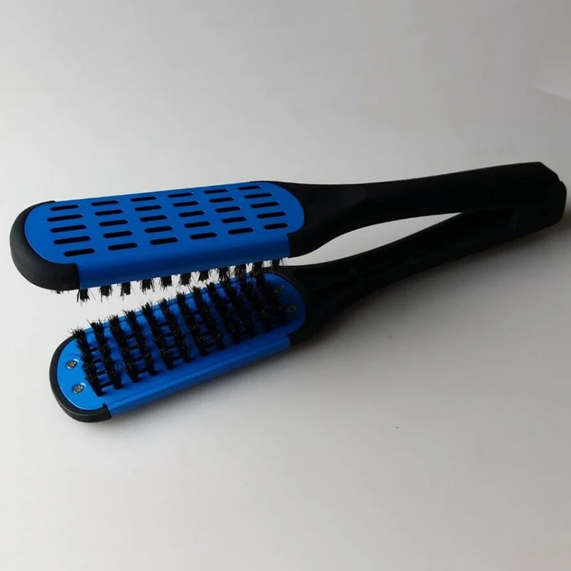 Blue Hair Straightening Comb Styling Tools Boar Bristle Double Sided Brush Comb Clamp