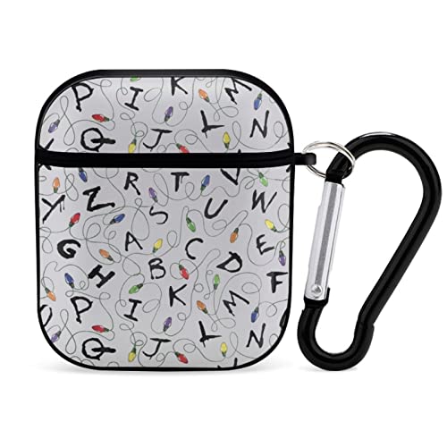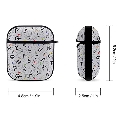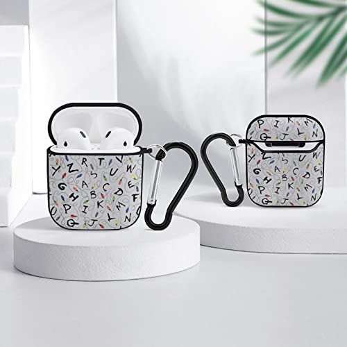 Stranger Letter Things Custodia rigida bianca per AirPods 1/2 Auricolari Copertura auricolare Custodia protettiva con portachiavi Carino stampato