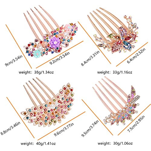 4 PZ Strass fiore pettini per capelli per le donne decorative, INLAZYTIM Cristallo Fiori Capelli Pettine Laterale Sposa Forcina Accessori per Panini Del ballo