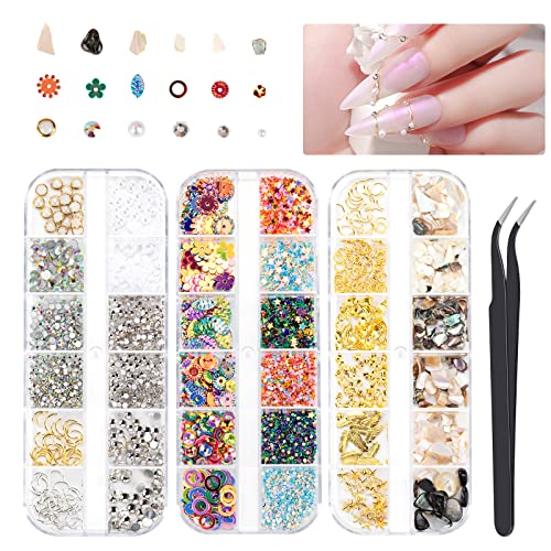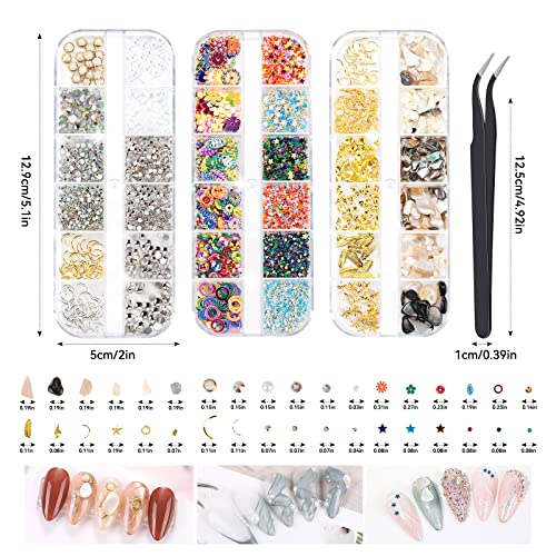 Il Pacchetto Include: Riceverete 3 scatole di decorazione nail art ornamento, ogni scatola con 12 diversi colori, dimensioni e forme di forniture nail art, e venire con 1 pick up pinzette, la quantità è sufficiente per soddisfare il vostro uso quotidiano vari.