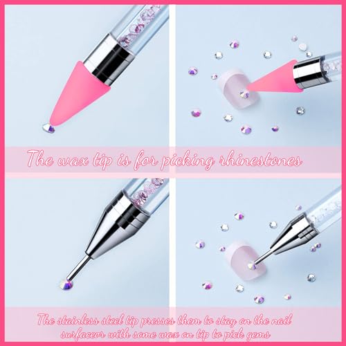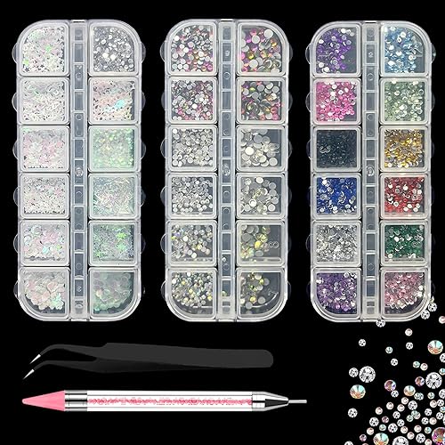Set di strass per nail art con 3 scatole di gemme di strass per unghie(la quantità è di circa 4200 pezzi) anche con una pinzetta e una penna per strass per applicare facilmente gli strass.
