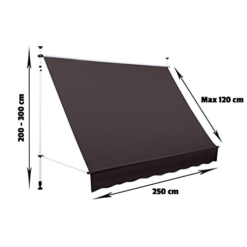 Strattore Tenda da Sole Terrazzo 250 x 120 cm Regolabile - Senza forare - Antracite Casa per Balcone Avvolgibile