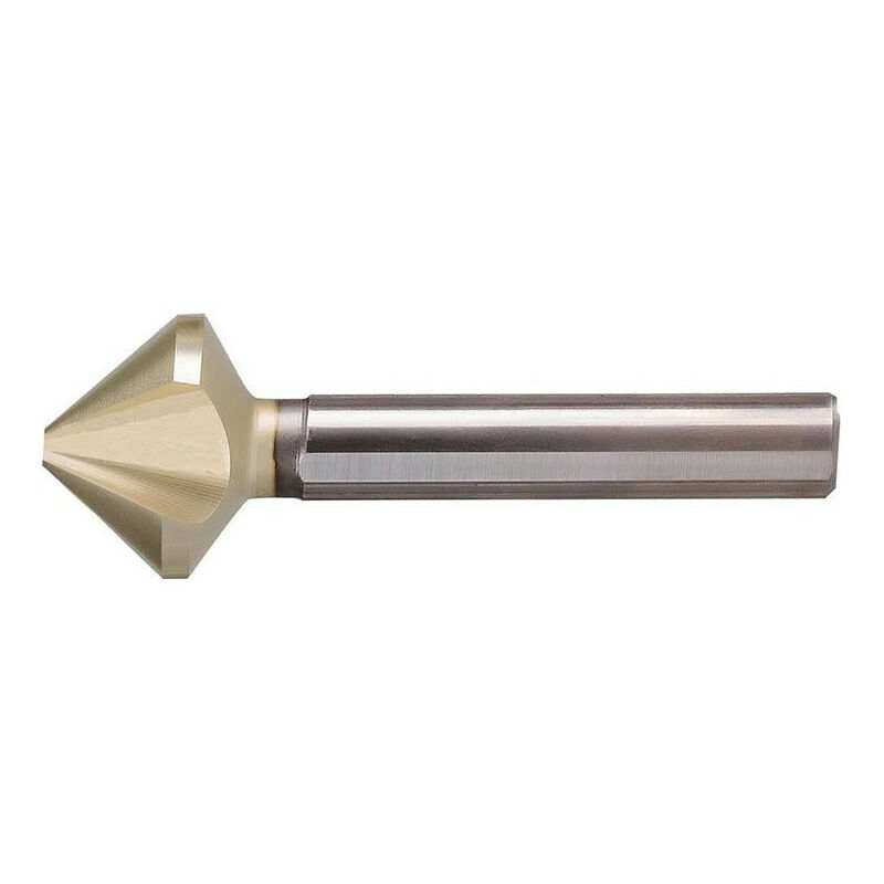Svasatore conico a 90° con gambo a 3 facce. diviso in parti uguali. Rivestito in ZrN - HSS - DIN 335 C - 3 taglienti con passo altamente disuguale per evitare segni di sfregamento o svasature - Angolo di punta 90° - Rettificato assialmente e radialmente - Dotato di angoli di spoglia e di sporgenza per la maggior parte degli utensili. e angoli di spoglia per i materiali più comuni - Scanalature diritte - Gambo a 3 superfici - Tolleranza del gambo h9 - Con rivestimento speciale - Estremamente resistente alle vibrazioni - Adatto anche per applicazioni manuali