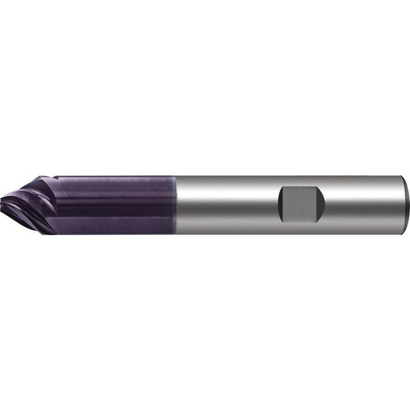 Fresa per smussi in metallo duro integrale SpyroTec. Rivestita in TiAlN - Design: Corta - Metallo duro integrale - Standard di fabbrica - Tipo N - 5 taglienti con passo disuguale - DIN 6535-HB - Con taglio centrale - Angolo di spirale 20-24° - Angolo di punta 60° - Geometria del tagliente spiralato con angolo di spoglia positivo per un taglio morbido - Ottima scorrevolezza e migliore qualità superficiale per smussi di grandi dimensioni.