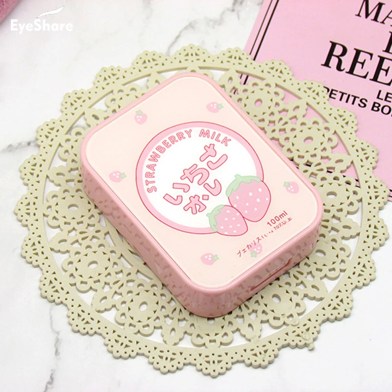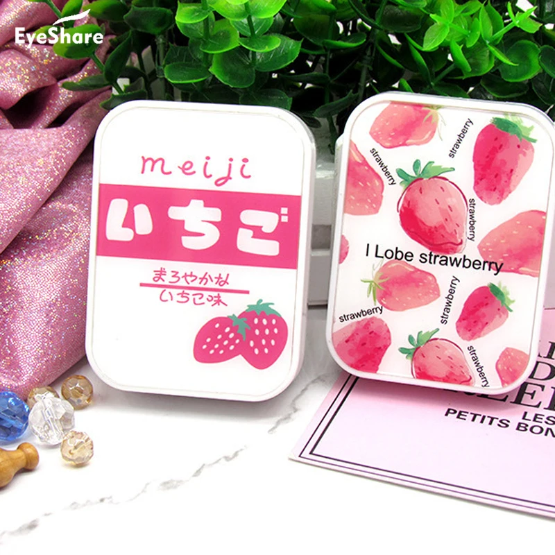 Strawberry Lens Case with Stick Mirror Set Contact Lens Partner Container Storage Holder
