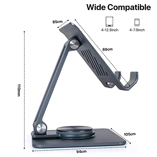 STRBDYI Supporto tablet in lega di alluminio girevole a 360°, regolabile in angolazione e pieghevole per iPad Pro/Air/Mini, telefoni cellulari, Huawei, Surface fino a 12,9 inch