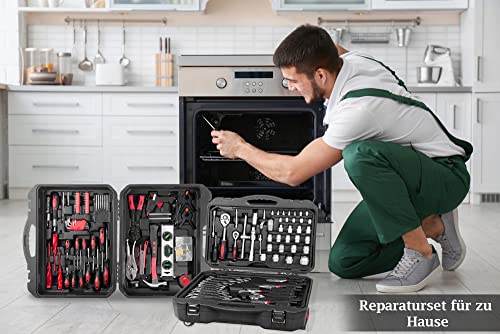 Set di attrezzi versatile: questa cassetta degli attrezzi professionale è l'attrezzatura di base perfetta per ogni casa, garage o campeggio. Riempito con gli strumenti principali per ogni utilizzo