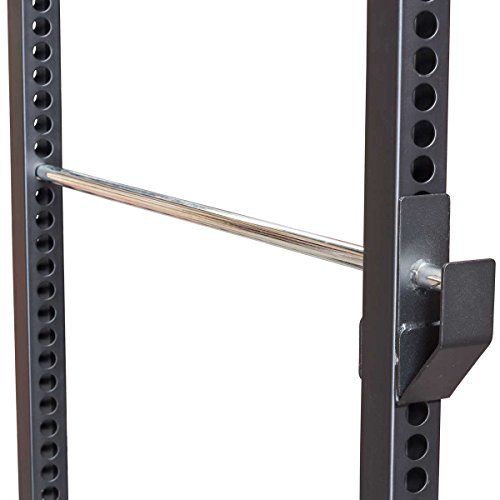 Nella confezione sono compresi: Impugnature per dip, una barra per trazioni e un supporto per asta e barre di sicurezza sulla parte anteriore e posteriore della gabbia.