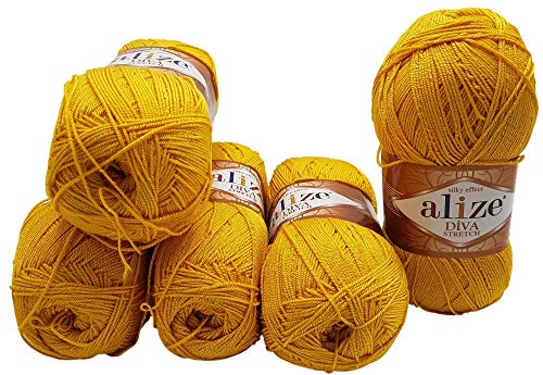 Diva Stretch - 5 gomitoli da 100 g ciascuno (500 g in totale), con elastan Kurkuma 488.