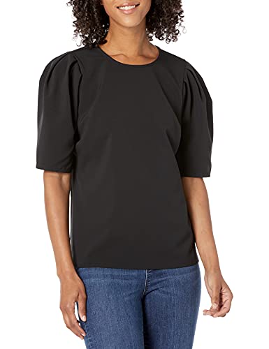 Questa camicia a maniche corte in tessuto elasticizzato presenta maniche a sbuffo e una chiusura posteriore con bottone.