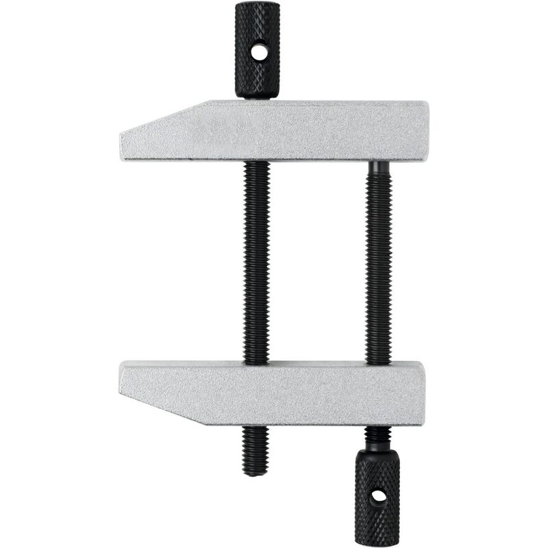 Ganasce completamente in acciaio, regolazione parallela mediante 2 aste filettate, zincato lucido. Dati tecnici Tipo di prodotto Strettoio Profondità arco, mm 72 Apertura, mm 116 Filettatura dell'asta M9