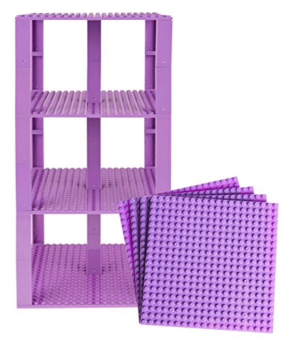 Strictly Briks Set per Costruzione Torre - Include 4 basi da 15,2 x 15,2 cm e pilastri 2x2 - compatibili con Tutte Le Principali Marche - Lavanda